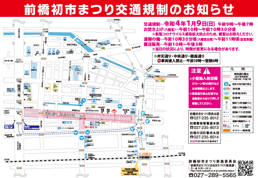 「前橋初市まつり」開催日の周辺道路では、一部交通規制が行われます。