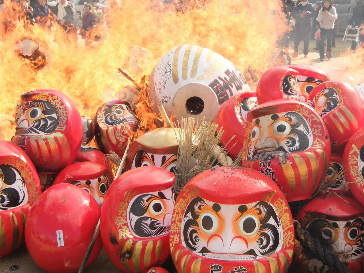 だるまのような願いを託す縁起物は、1年でその役目を終えると考えられているため、火で清めて天へ願いを返すという意味を持っています。