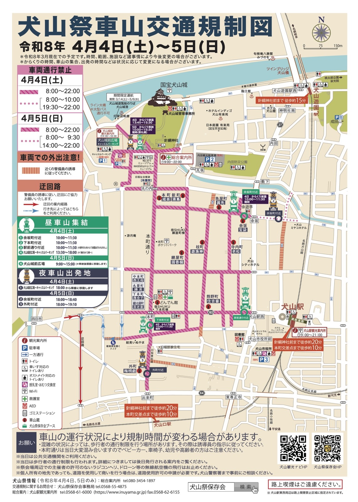 「犬山祭」開催期間の周辺道路では、一部交通規制が行われます。