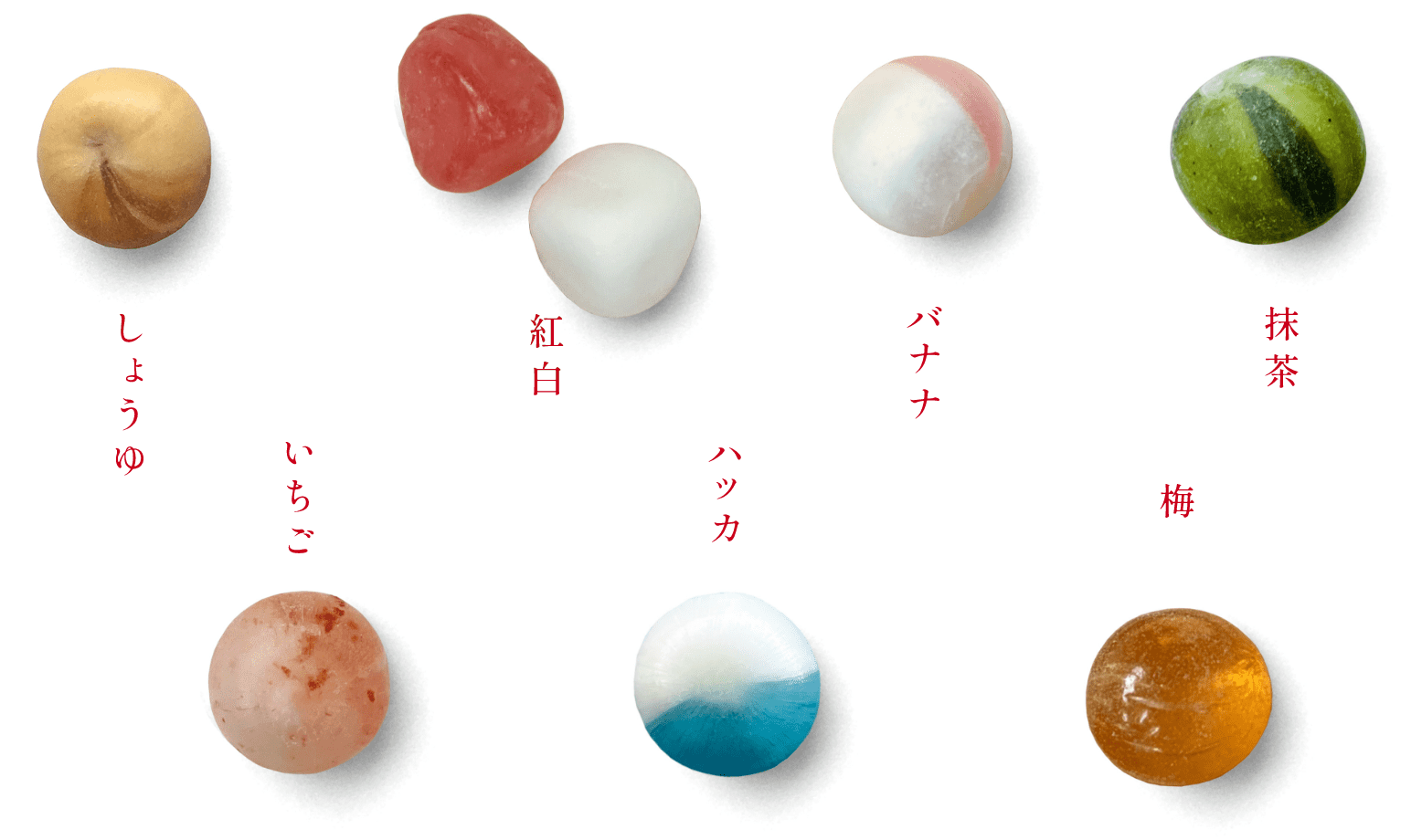 島田飴に並ぶ縁結びの飴になり、7つの味が販売されています。(紅白・しょうゆ・バナナ・いちご・抹茶・梅・ハッカ)