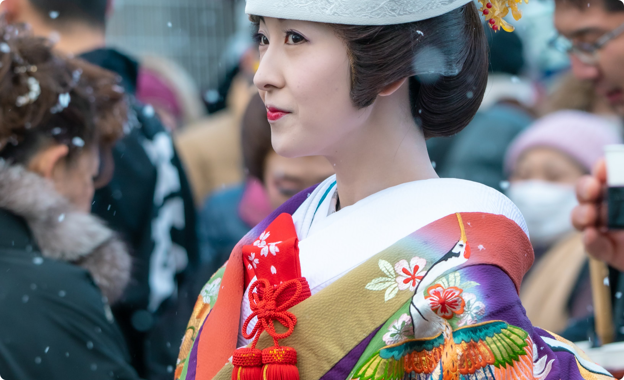 *白無垢(しろむく):白一色でまとめられた正礼装で「けがれのないまっさらの状態」を表す。